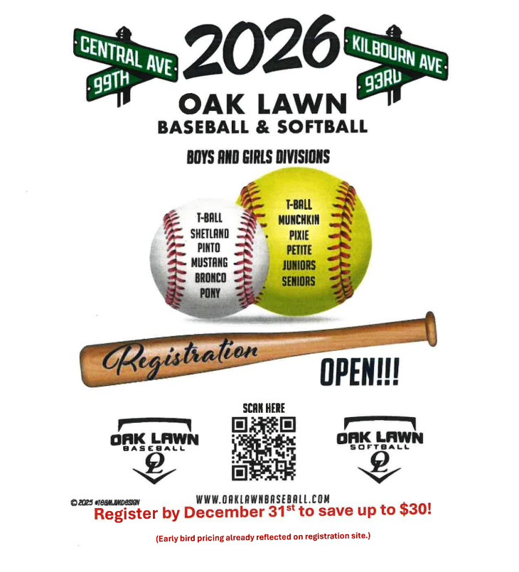 Welcome to Oak Lawn Baseball & Softball Spring 2026 Baseball and Softball Registration Register Now! Information for our baseball house league for boys ages 4-14 Boys Baseball Information for our Softball house league for girls ages 4-14 Girls Softball More Information Oak Lawn Gems Softball Tryouts June 12, 2025 Tryouts begin in July for OLB&S travel teams. Find dates and important information on the flyers below. Registration links are… Oak Lawn Lightning Baseball Tryouts June 11, 2025 Oak Lawn Lightning Baseball program will be hosting tryouts for the 2026 season this July! ⚡️ Please see the flyer… White Sox Outing May 19, 2025 White Sox Outing Join us at Guaranteed Rate Field for the OLB&S Family Day on July 7, 2025 to see… White Sox 2025 Summer Camp (5-12yrs) Oak Lawn May 5, 2025 Chicago White Sox Summer Camp Age 5-12 Learn from the pro’s this summer at a White Sox Summer Camp presented… ThunderBolts Family Days at Ozinga Field May 5, 2025 Oak Lawn Baseball and Softball is excited to partner with the Windy City ThunderBolts minor league baseball team to play our… Sponsors World Series Level Sponsor Platinum Level Sponsor Silver Level Sponsor Silver Level Sponsor Next Previous Meet the Board Field Locations Contact Us